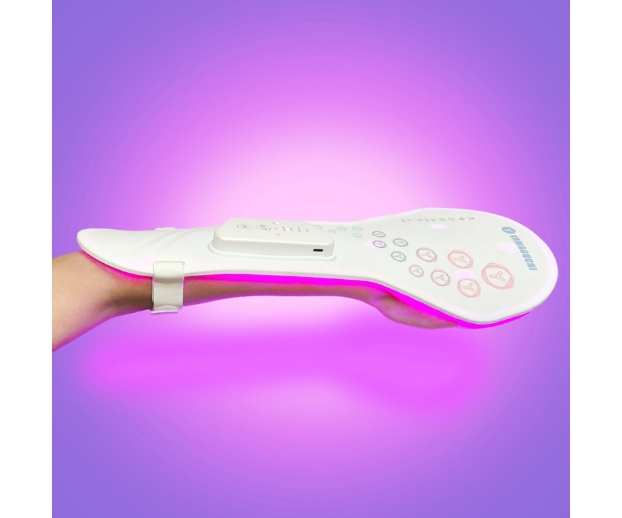 Первые сигналы старения заметны уже в 30-летнем возрасте, поэтому за руками нужно ухаживать не меньше, чем за лицом. Но это нетрудно, когда есть светодиодная маска с технологией фотоомоложения. Фототерапия эффективно решает самые разные несовершенства кожи: морщины, обезвоженность, дряблость — только некоторые из них. Во время терапии светом поглощённые кожей импульсы преобразуются во внутриклеточную энергию, которая запускает фотохимическую реакцию. Происходит регенерация клеточных элементов, синтез коллагена и эластичных волокон. Резервы организма пополняются, и он фактически обновляет сам себя. Именно поэтому терапия светом является неинвазивным, безболезненным и безопасным способом борьбы со старением кожи. В маске для рук есть 400 светодиодов и четыре вида света. У каждого из них — своя научно обоснованная польза. Так, например, красный свет оказывает сразу три эффекта: омолаживающий, антиоксидантный и восстанавливающий. Он запускает обменные процессы и убирает следы преждевременного старения. Синий свет обеззараживает кожу от вирусов и бактерий, которые вызывают воспаления. Оранжевый свет стимулирует выработку структурных компонентов кожи: коллагена, эластина, гиалуроновой кислоты. А фиолетовый, сочетая в себе возможности синего и красного спектров, лучше всего восстанавливает тонус.
