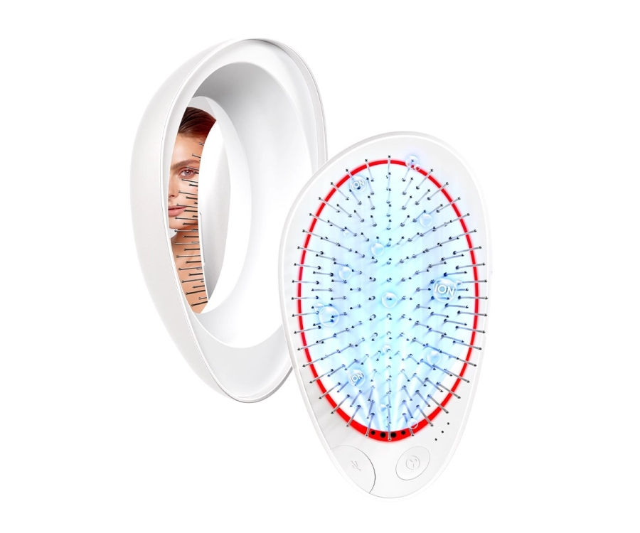 Тревел-версия знаменитой расчёски с защитным футляром укрепляет волосы, делая их блестящими, гладкими и послушными, как после салонного ламинирования. Расчёска решает проблемы восстановления, защиты и укрепления волос, используя современные методы трихологии: микротоки, ионизацию, вибромассаж и светотерапию. 160 зубчиков без труда удаляют ороговевшие клетки и перхоть, облегчая дыхание кожи головы. У расчёски есть футляр с зеркальцем, который защищает зубчики от пыли и повреждений. Благодаря этому, а ещё небольшим размерам и лёгкому весу, ею очень удобно пользоваться в пути.